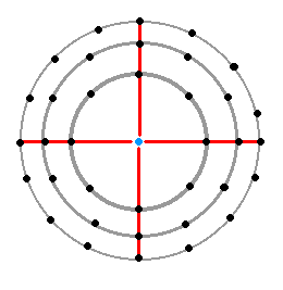 there are numerous discrete points along the circumference of each circle. The more distant the circle from