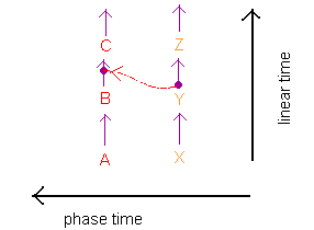 While synchronistic events are causal from the phase time perspective, there is sometimes the ILLUSION of causality in linear time. For example, when a person takes a quantum action to manifest a certain event in his life, such as through prayer or focused visualization, once the manifested event occurs he may investigate and trace back the sequence of events critical for that synchronicity to occur. He finds that the synchronicity was in the process of manifestation BEFORE he made the request.