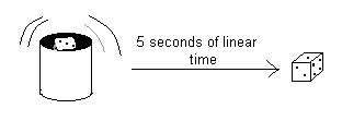 To better understand how the three dimensions of time relate, consider the example of someone shaking a die for several seconds before throwing it: