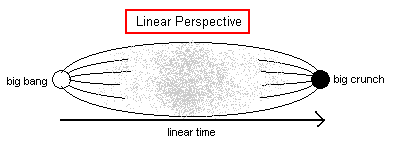 Linear time runs circularly around this loop, and thus it appears that time is endless, that Big Bangs and Big Crunches occur repeatedly, and that there is no true beginning or end to this physical universe. This is the conclusion reached by investigating reality with physical scientific tools, which by virtue of their physicality are not able to see outside linear time.
