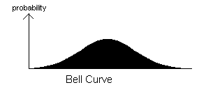 Among the many probable futures that may happen next, base level consciousness chooses a particular outcome by default if no other being or consciousness influences it otherwise. In mapping the probability distribution function of events, they tend to form a bell curve, a gently sloping bell-shaped curve with the highest point of the curve in the center, which is the region of highest probability, and tapering tails to the side representing decreasing regions of probability.