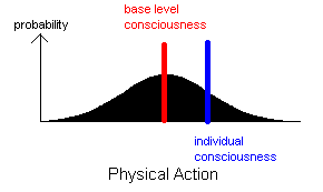 Base level consciousness decides where the center of that bell curve resides. Quantum actions bias the probability distribution off center.